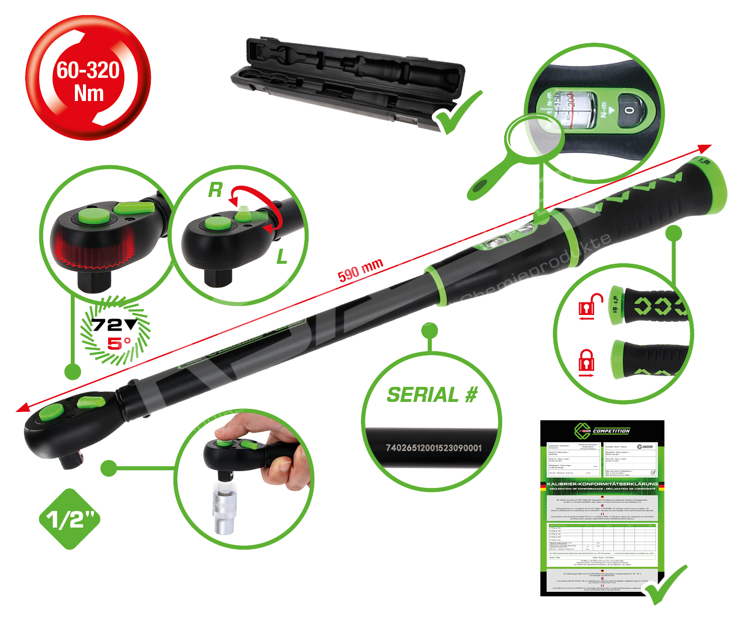 1/2″ COMPETITION Ratschen-Drehmomentschlüssel, 60-320Nm