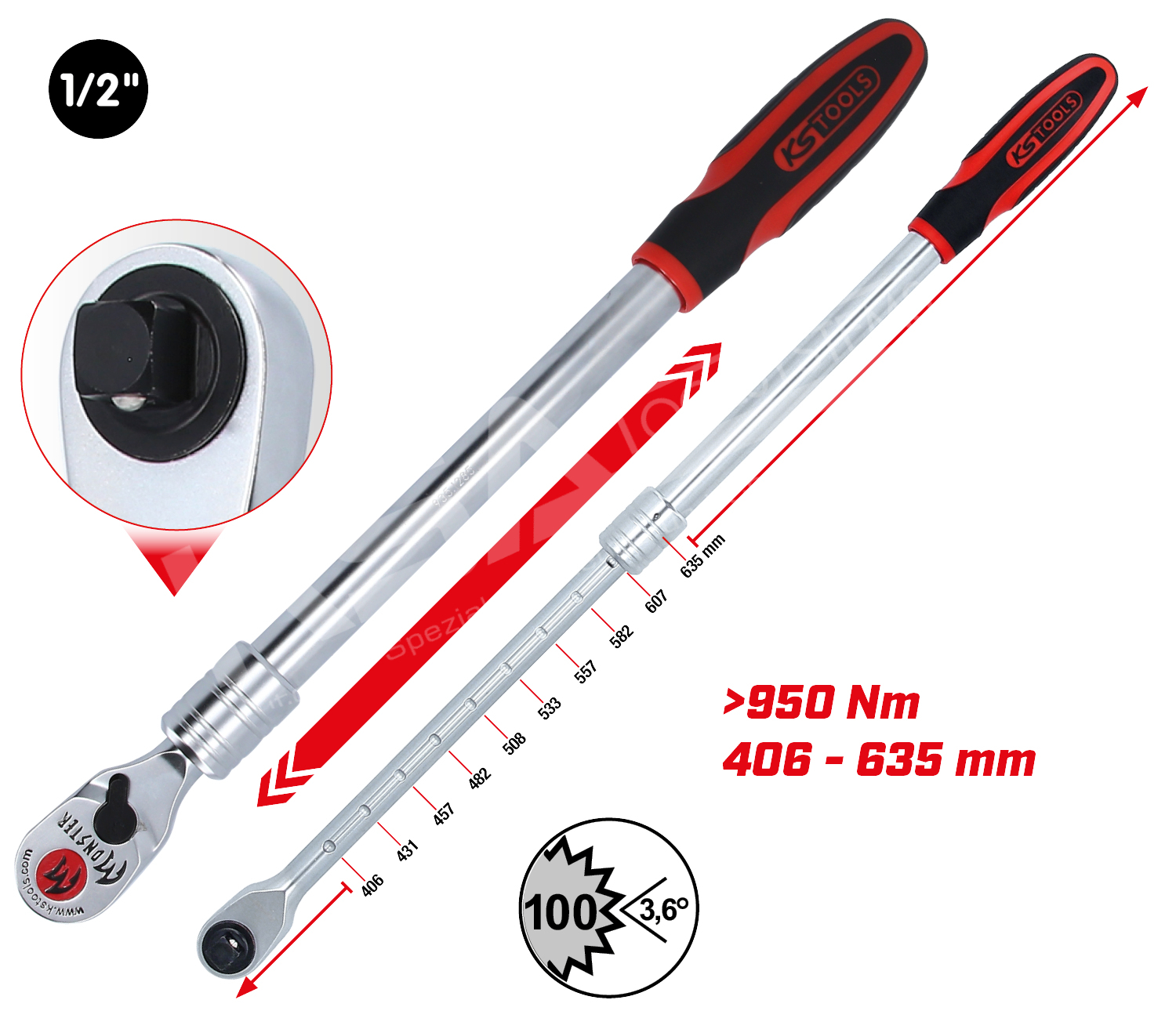 1/2″ Monster Teleskop-Umschaltknarre, 100 Zahn
