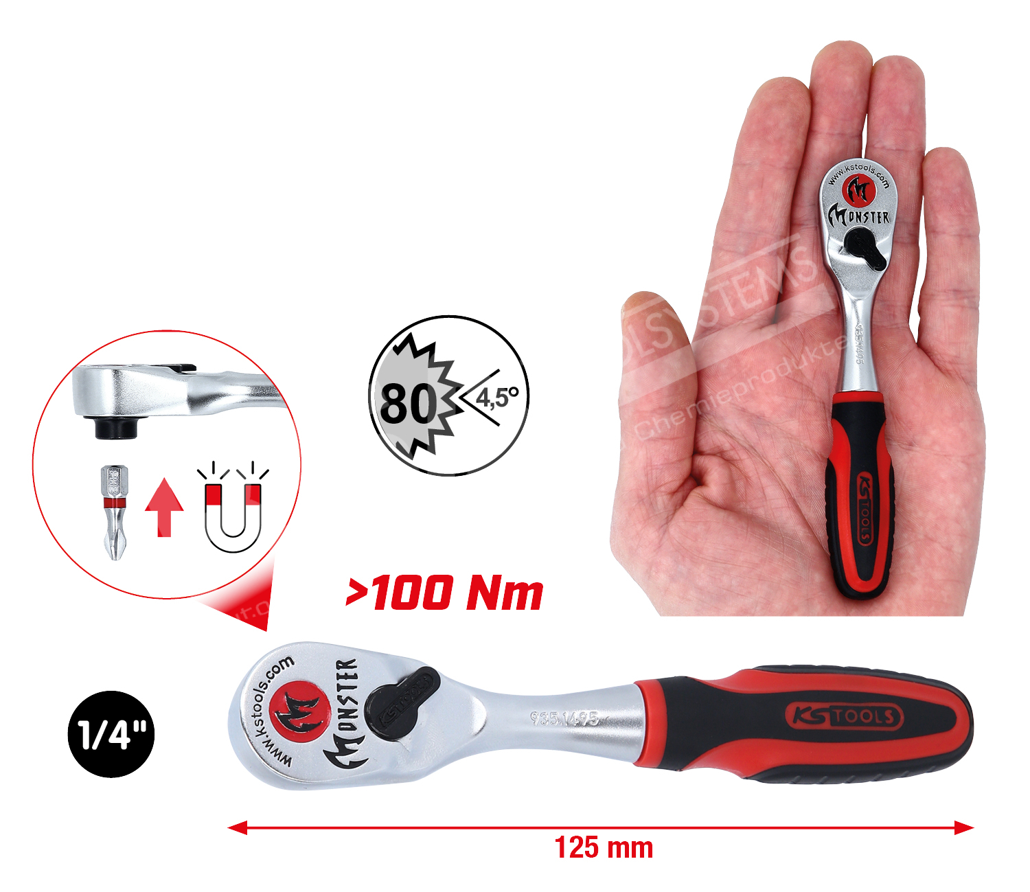 - fein verzahnter 80-Zahn Ratschenmechanismus