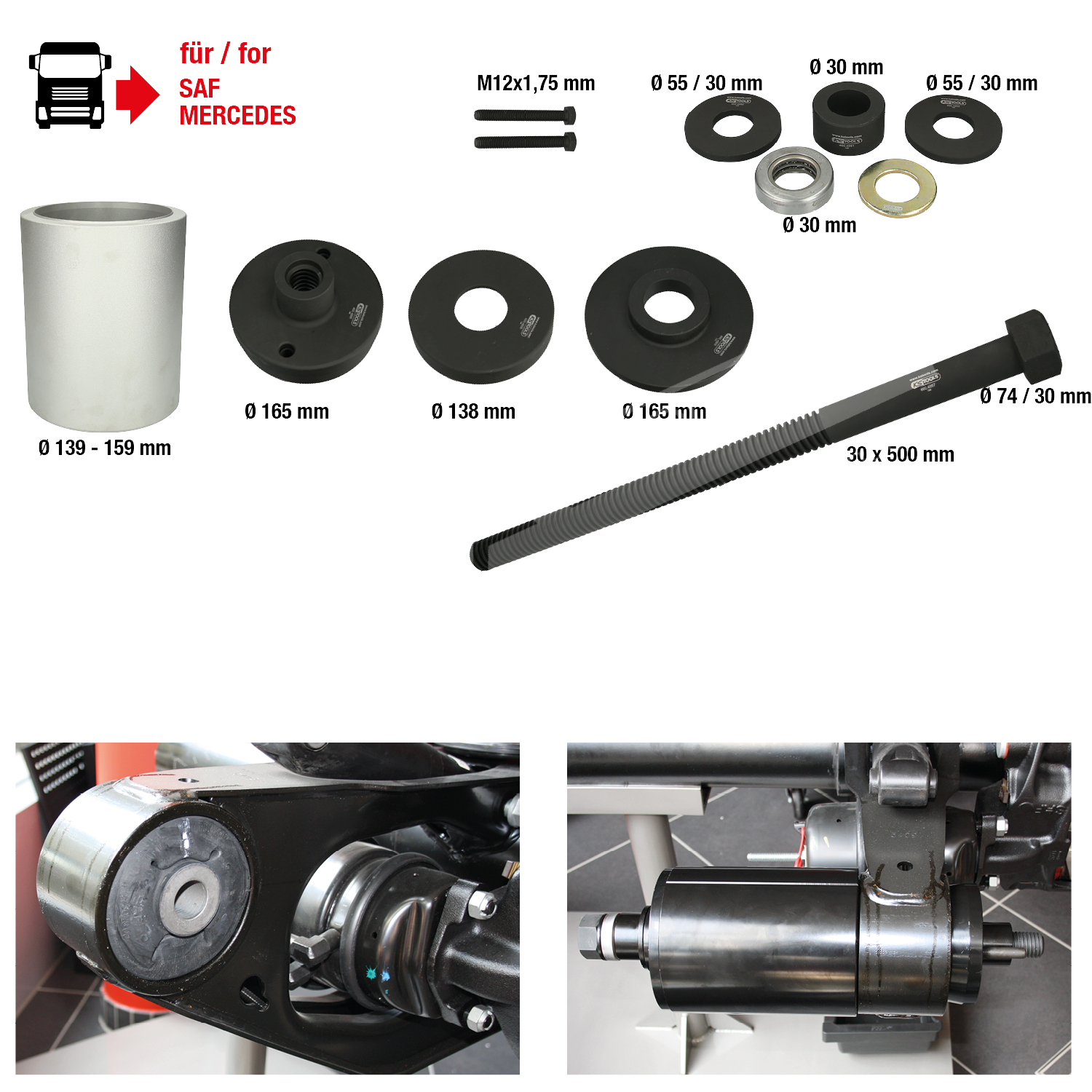 - ideal geeignet zur Montage und Demontage der 3D-Buchsen an SAF- und Mercedes-Achsen
