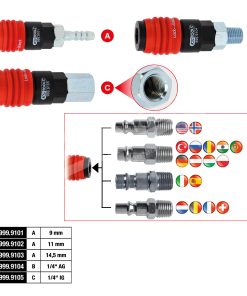3in1 Universal-Druckluft-Sicherheitskupplung, 11 mm mit Schlauchtülle