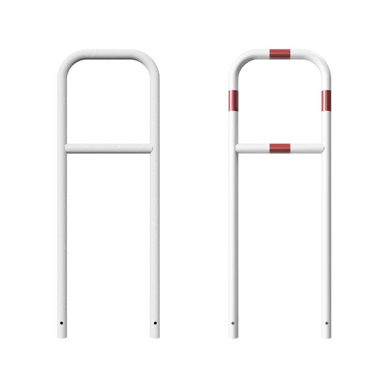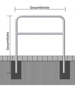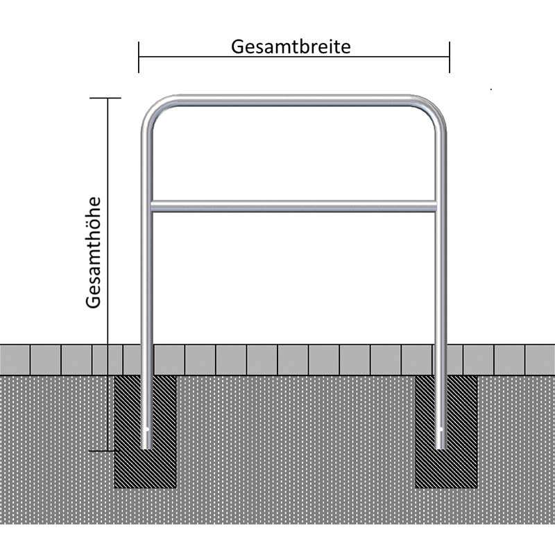 Die Absperrbügel aus verzinktem Stahl Ø 48 mm zum Einbetonieren, 1400 mm Höhe, mit Querholm dienen im Gehweg- und Bürgersteigbereich als Absperrung, zum Trennen von Fahrbahnen oder in Grünflächen als Schutzbügel für Bäume und Beete.