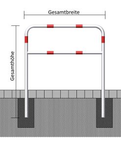 Der zusätzliche waagerechte Querholm als Knieholm sorgt für mehr Stabilität im Rohrbügel aus Stahlrohr Ø 48 x 2,5 mm und dient als Unterfahrschutz für kleine Kinder – ein großer Vorteil an Straßen!