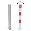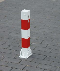 Der robuste Parkpfosten ist abschließbar und hat gekippt eine Überfahrhöhe von nur 70 mm. Dank der selbsteinrastenden Verriegelung lässt er sich schnell und bequem wieder senkrechtstellen. Der niedrige Absperrpfosten ist rein feuerverzinkt oder weiß beschichtet mit roten Reflexstreifen erhältlich. Sie haben die Wahl zwischen den Reflexionsklassen RA1 und RA2.