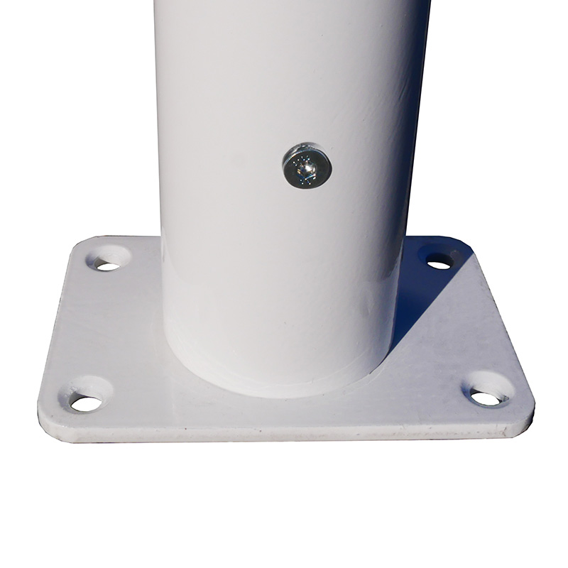 Die ortsfesten Absperrpfosten können aufgedübelt oder mit einer Bodenhülse, die Sie separat in unserem Shop kaufen können, fest einbetoniert werden. Eine Bodenplatte zum Aufdübeln ist bereits im Lieferumfang enthalten.