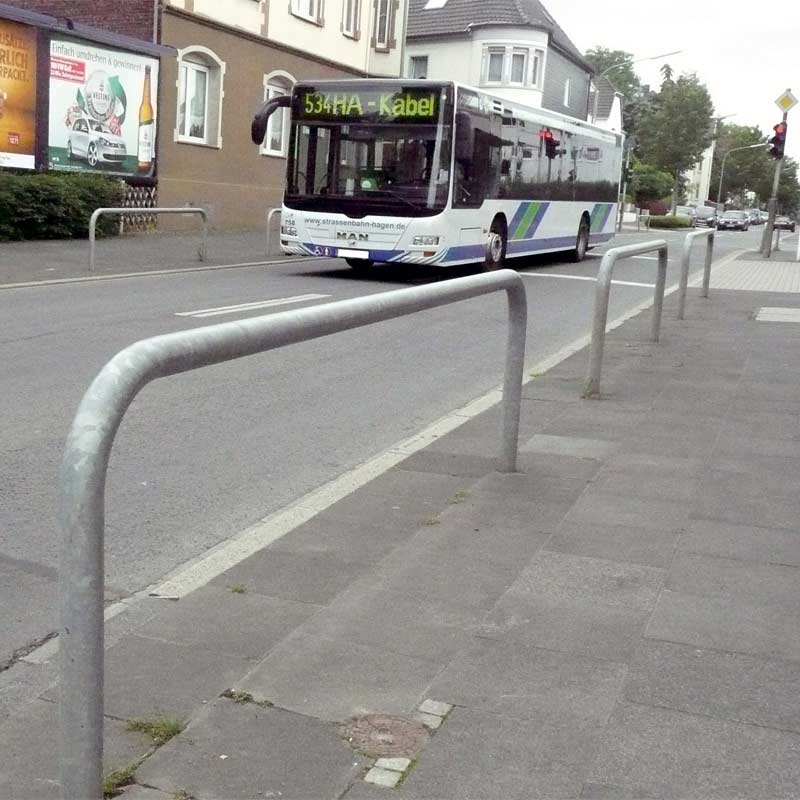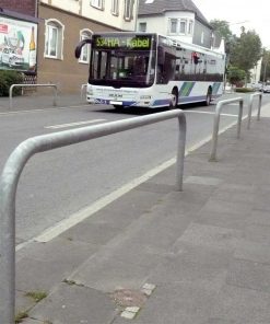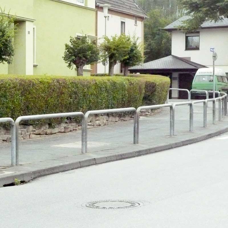 Der gebogene Abweisbügel aus verzinktem Stahl Ø 76 mm zum Einbetonieren, 1500 mm Höhe von Schake ist ein perfekter Schutz für Verkehrsteilnehmer im Straßenverkehr und auf Wegen sowie Plätzen.