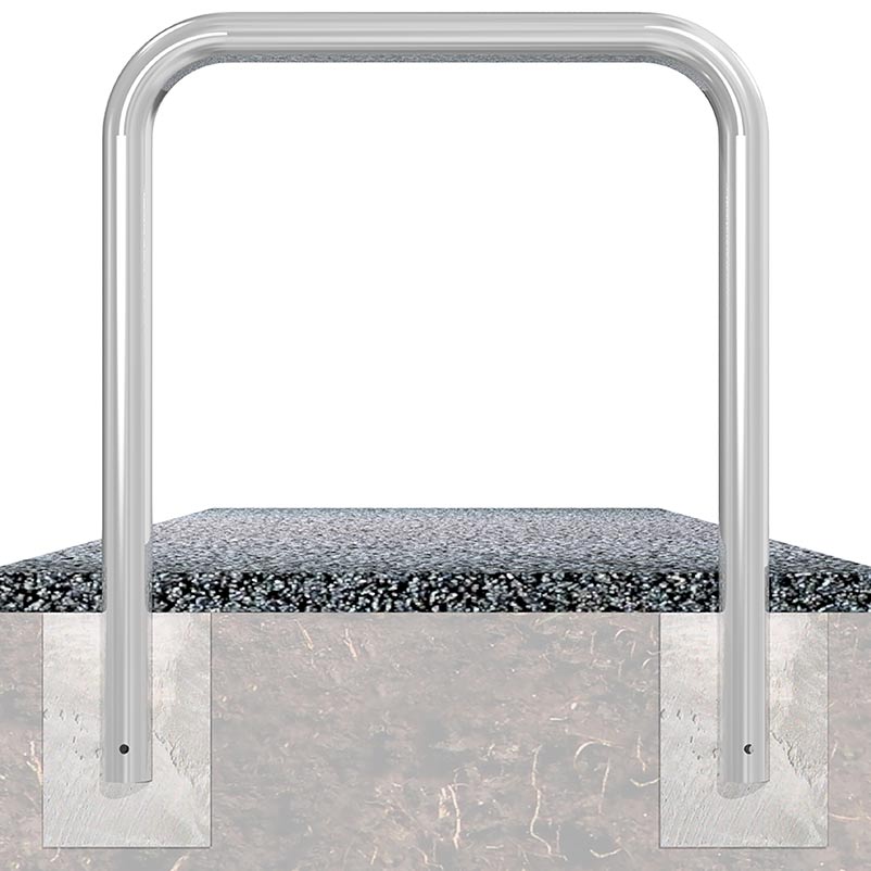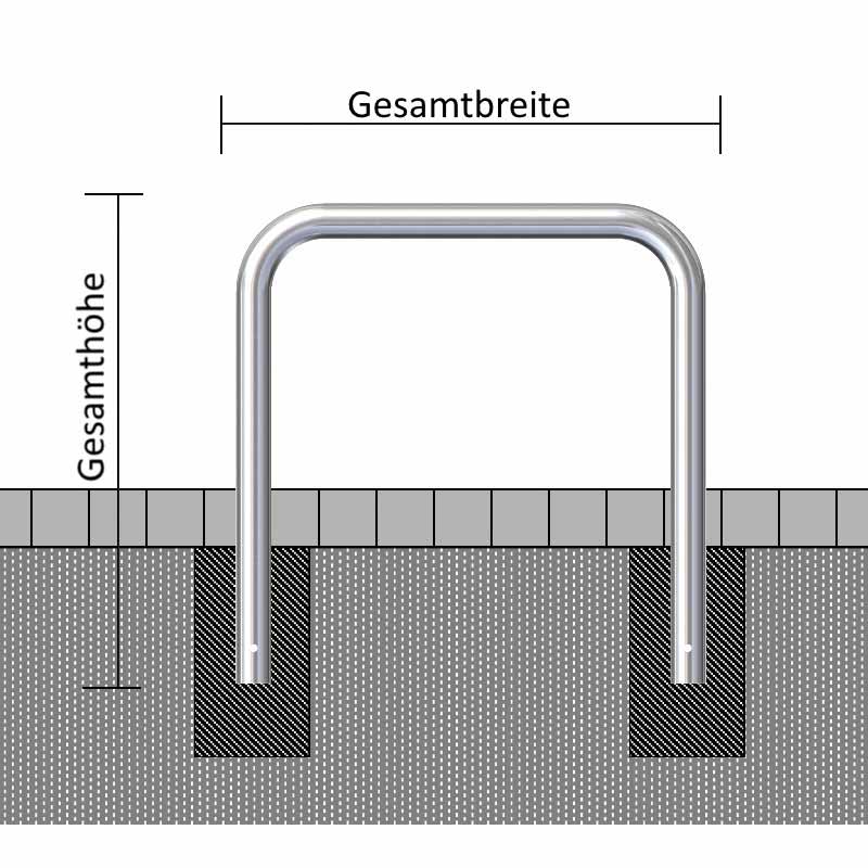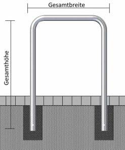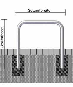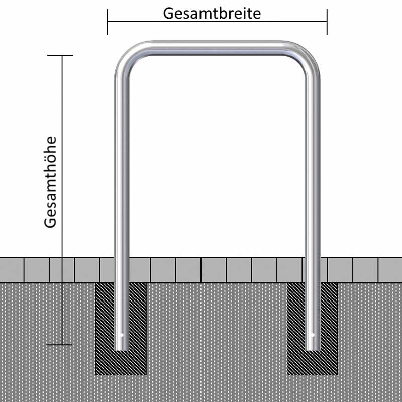 Die zweibeinigen Rundrohrbügel betonieren Sie im Boden ein. Als Auszugssicherung aus dem Betonfundament liefern wir 2 Erdanker aus Rundstahl mit. Passende Löcher sind unten im Rundrohr vogebohrt.