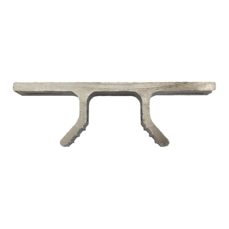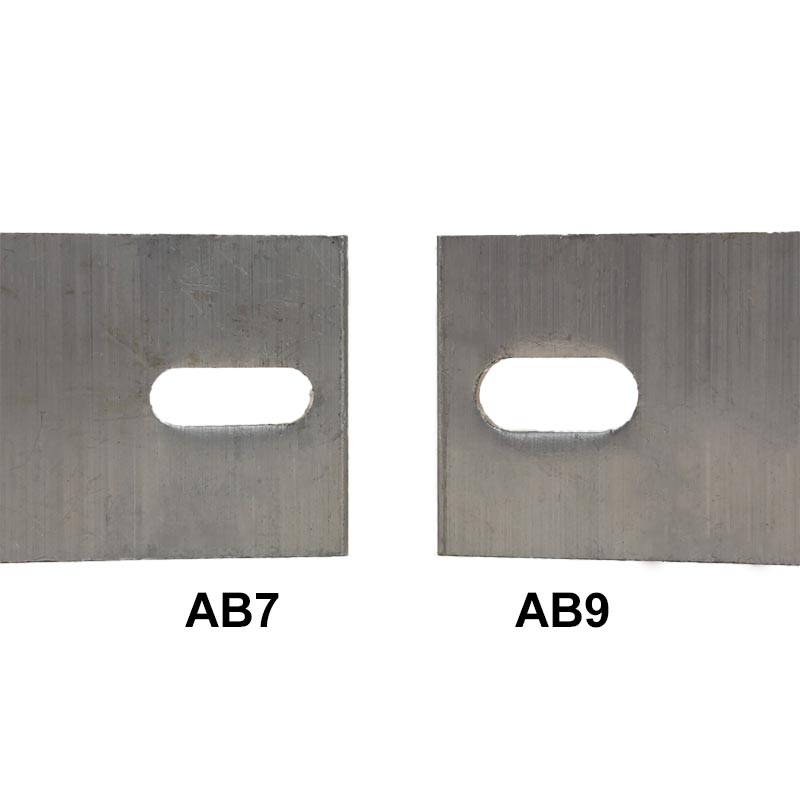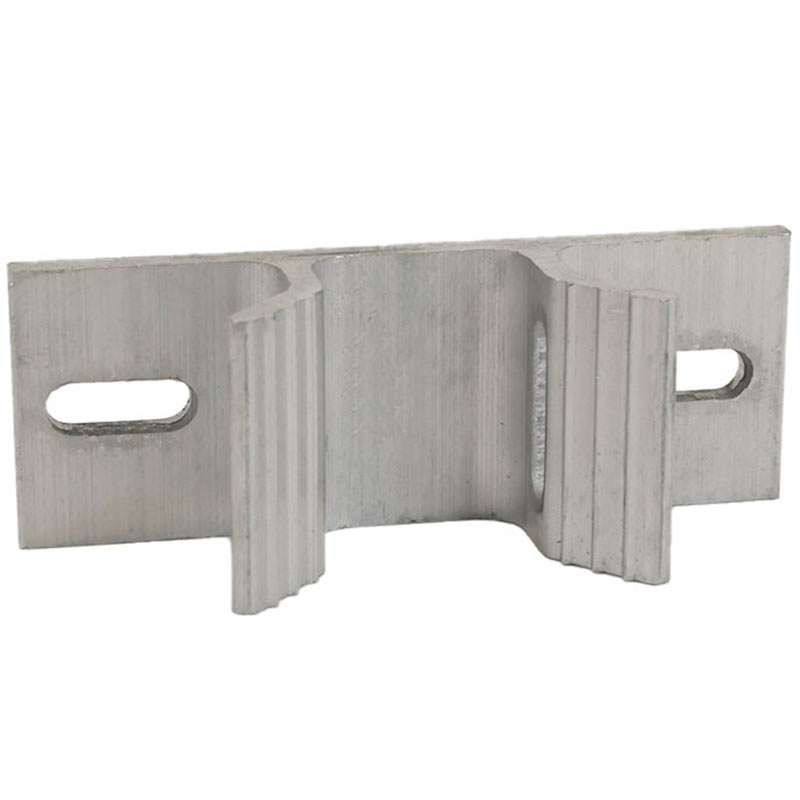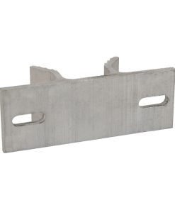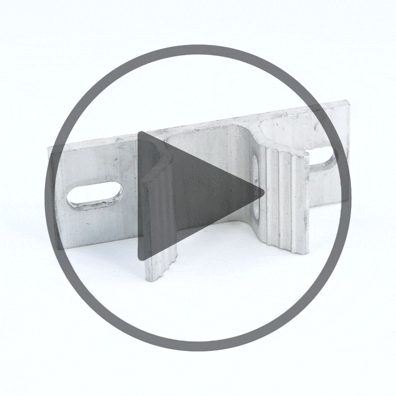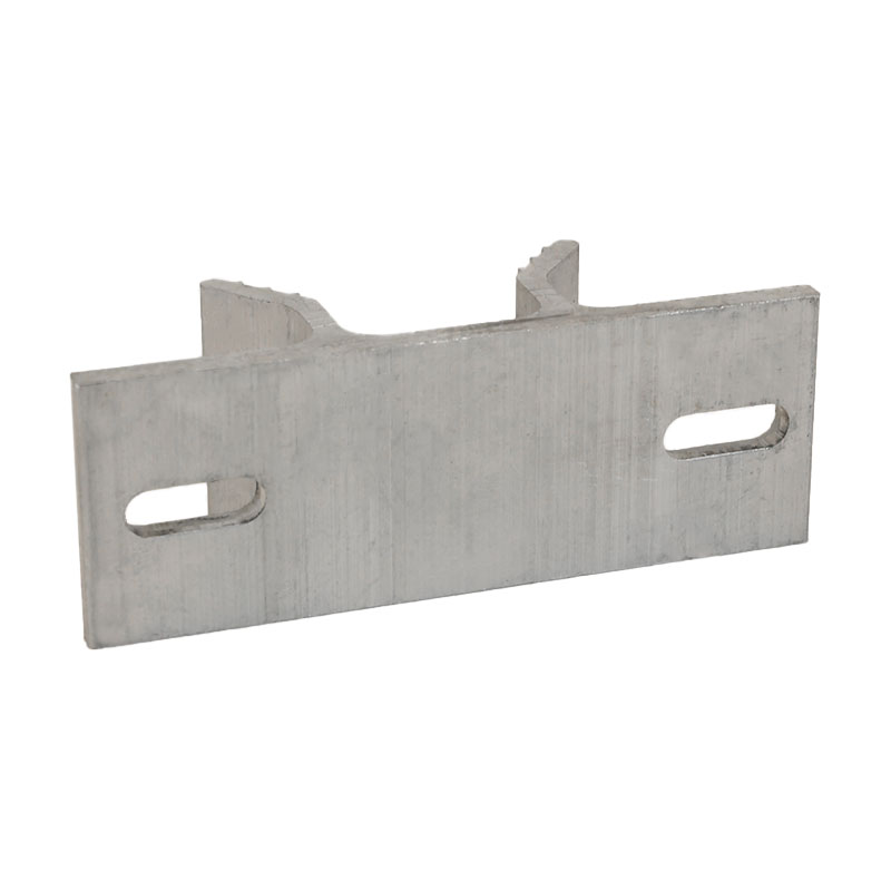 Im vorderen Steg der Aluminium-Bandschelle befinden sich zwei Langlöcher mit einem mittigen Lochabstand von 80 mm.