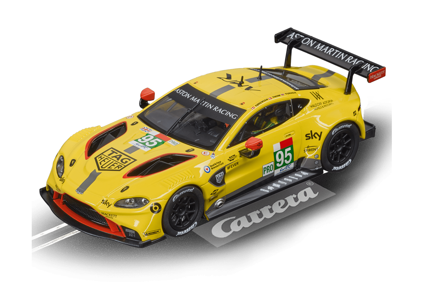 Auf der Langstrecke setzte das Aston Martin Racing Team 2019 auf den mit über 450 PS starken Aston Martin V8 Vantage GTE. Der grüne Bolide verfügt über einen 4.0 Liter-V8-Turbomotor mit Turbolader und konnte sich bei der FIA World Endurance Championship auf dem Shanghai International Circuit den Sieg im 6-Stunden-Rennen sichern. Bei Carrera ist der starke Flitzer Aston Martin Vantage GTE „Aston Martin Racing, No.95“ die ideale Besetzung für ausgedehnte Racing-Wochenenden an Deiner Rennstrecke.