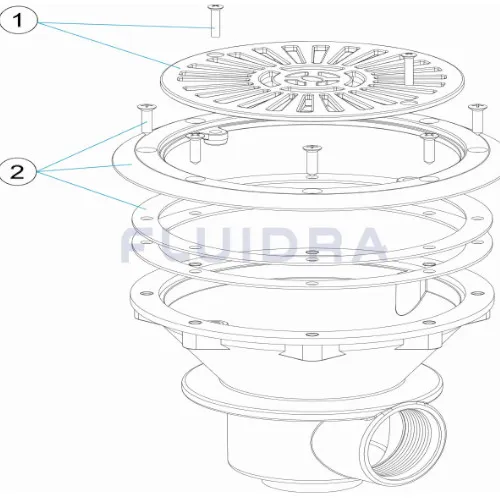 - 1 Bodenablauf Ø 230 mm mit Flansch, Dichtungen und Schrauben (mit Gewindeinserts)