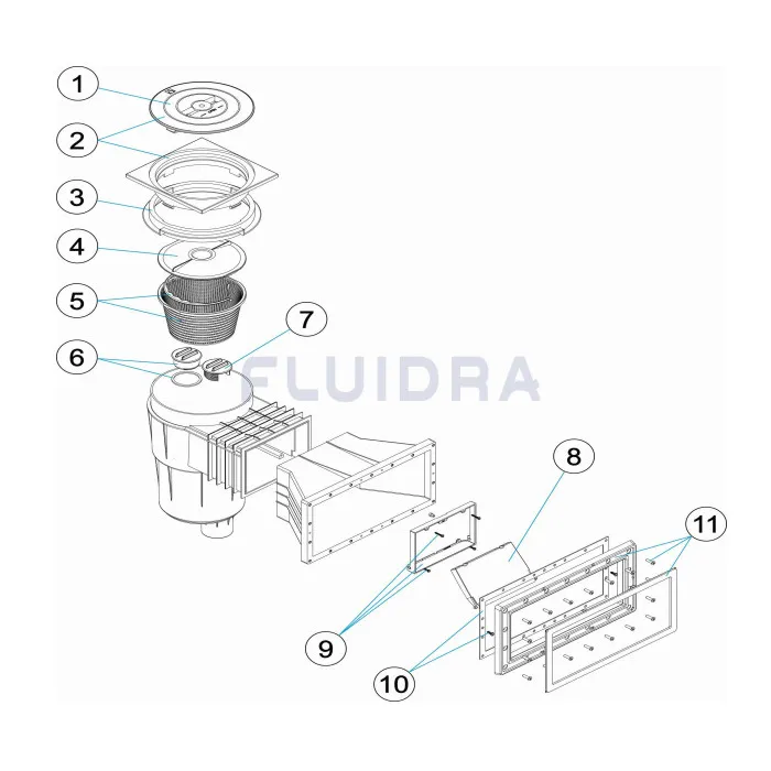 Astral Breitmaul 17,5 Liter Skimmer Oberflächenabsauger Zubehör: Flanschrahmen V4A Abdeckung Breitmaul für Astral Swim-tec