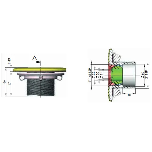 Anschluss Druckseite: 50 mm Klebeanschluss, 2 Zoll Außengewinde