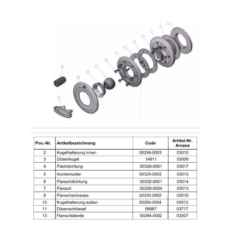 Für Folienbecken komplett mit Dichtungen, Schrauben, Flanschring und Kontermutter (für Aufstellbecken) 2″.