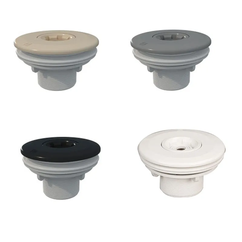 – Einströmdüsen: mit oder ohne Gitter erhältlich. Einlaufdüsen mit Gewinde haben einen Auslauf von 2“ und einen anderen Innendurchmesser. Die vorhandenen Gewindemodelle sind eigens für vorgefertigte und Liner-Pools designt und umfassen Dichtungen und Schrauben.