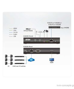 Die ATEN KA8280 HDMI KVM over IP Konsole unterstützt USB-Maus/Tastatur und zwei USB-Anschlüsse für die Funktion Virtual Media und 1 HDMI-Videoausgang mit Auflösungen bis zu 1920×1200 @60Hz.