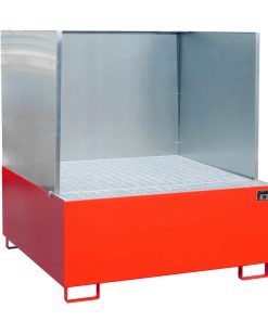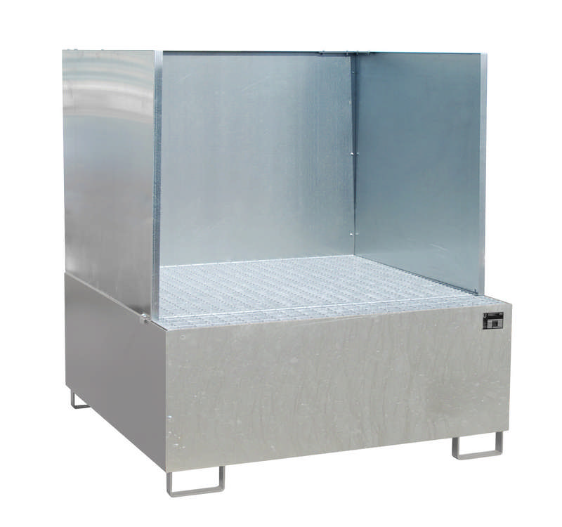Auffangwanne Typ AW 1000/SW, mit 3-seitiger Spritzschutzwand, max. Anzahl 1x1000l-IBC, versch. Farben o. Feuerverzinkt