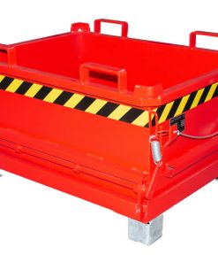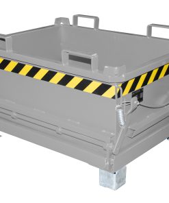 Ein bemerkenswertes Merkmal dieses Behälters ist die Möglichkeit, die Bodenklappe bequem per Seilzug vom Staplersitz aus zu entriegeln. Dies ermöglicht eine effiziente Entleerung des Behälters, ohne dass zusätzliche Arbeitskräfte erforderlich sind. Die selbstschließende Bodenklappe schließt automatisch, sobald der Behälter aufgesetzt wird, was eine sichere Handhabung gewährleistet.