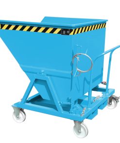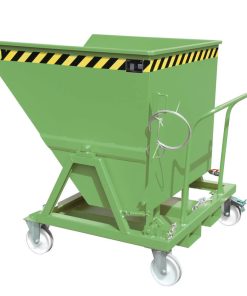 Diese Kippmulde bietet eine hohe Flexibilität, sowohl beim Transport als auch bei der Entleerung von Materialien. Dank ihrer Radausstattung und des ergonomischen Schiebegriffs kann sie leicht manuell bewegt werden. Darüber hinaus verfügt sie über Einfahrtaschen, die den Transport mit einem Gabelstapler ermöglichen.