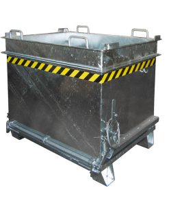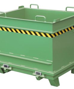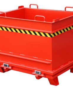 Die bessere Logistik für eine wirtschaftliche Baustellenversorgung —- Stabile Konstruktion für robusten Einsatz — Bodenentleerung — Verstärkte Bodenklappe mit 2 Verriegelungen — Entriegelung der Bodenklappe per Seilzug vom Staplersitz — Aufnahmen für Gabelhubwagen, Gabelstapler und Kran — Spezial-Randprofil für allseitige Steinklammer-Aufnahme
