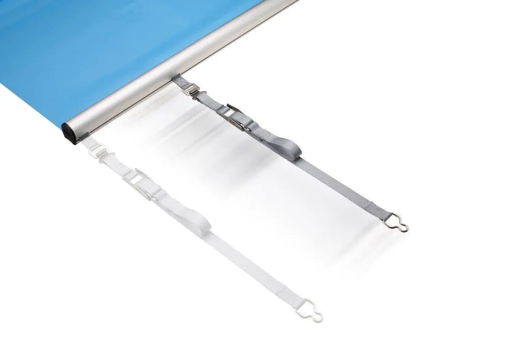 ⦁ Abspanngurte mit Schnellverschluss und versenkbaren Edelstahlstiften