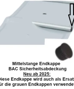 an Anfangs- und Endrohr, sowie versenkbaren, fußfreundlichen Edelstahl-Bodenankern.