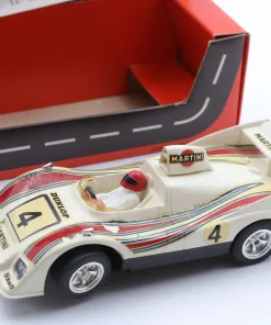 Maßstabsgetreues Slotcar in Modellausführung. Das Funktionsmodell besteht aus einer mehrteiligen Hartplastik-Karosserie sowie einem separaten Fahrwerk. Letzteres setzt sich aus Komponenten aus Kunststoff und Metall zusammen und ist mit Vollgummi-Reifen ausgestattet. Der Antrieb erfolgt über einen 12-Volt-Gleichstrommotor. Die Bezeichnung Rennversion weist darauf hin, dass dieses Slotcar über eine für den Modellsport geeignete technische Ausstattung verfügt. Das Produkt ist kein Spielzeug, sondern wurde speziell für die Bedürfnisse erwachsener Sammler und Modellbau-Enthusiasten entwickelt.