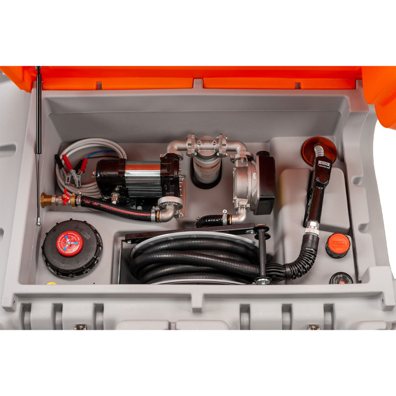 CEMO CUBE-Tank Mobil 980 l Premium mit leistungsfähiger Elektropumpe Bipump 12 V 500 W, ca. 85 l/min*, Schlauchaufroller mit 8 m Schlauch DN 25, Zähler, Filter mit Wasserabscheider und Automatik-Zapfpistole.