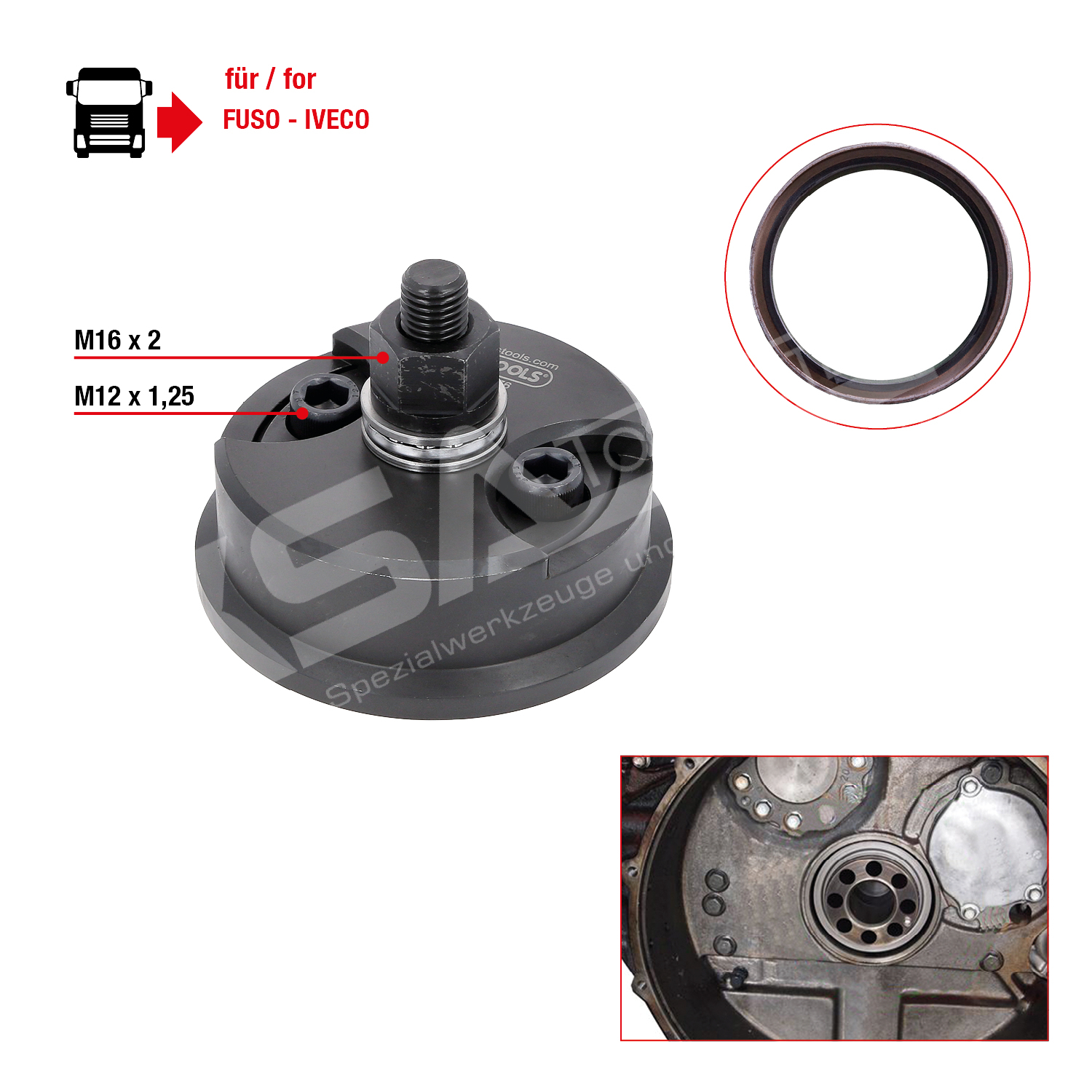- speziell für den vorderen Kurbelwellen-Radialdichtring mit einem Innendurchmesser 89,6 mm und Außendurchmesser 117,8 mm