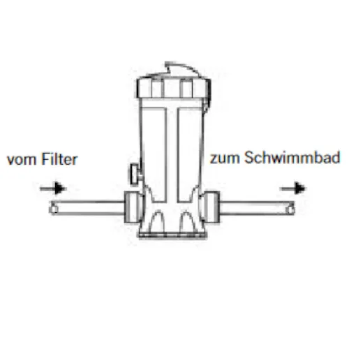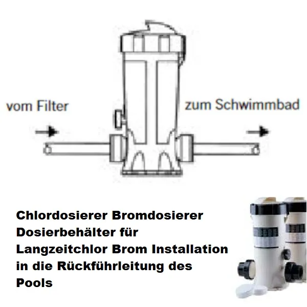 Der Chlordosierer wurde entwickelt, um in der Rückführleitung zu Ihrem Swimmingpool installiert zu werden, in der Nähe Ihres Filtersystems.