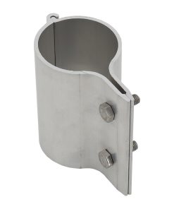 Die Stahlhülse für die Rohrverbinder Ø 60 mm hat einen Außendurchmesser von ca. 70 mm, das Modell für Ø 76 mm ein Außenmaß von ca. 89 mm.