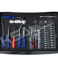 Der KSA Werkstattwagen ist bestückt mit einem 50-tlg. Werkzeugsortiment speziell für den Autoglaser. Vom Wischerarmabzieher zu Clip-Entferner, Montagespachteln oder Saughebern – mit unserem Werkstattwagen haben Sie alles was Sie im Alltag des Autoglasers an Werkzeug benötigen griffbereit und ordentlich verstaut.