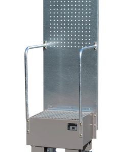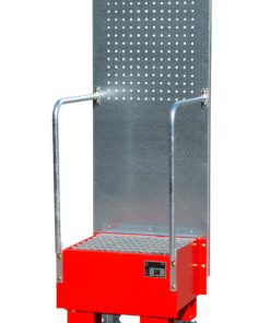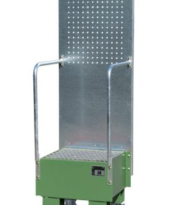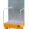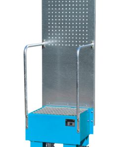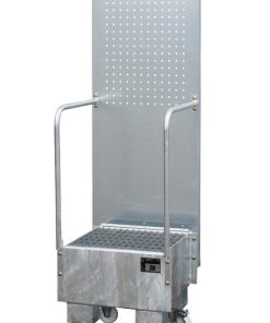 Fahrbare Auffangwanne mit Lochplattenwand LPW 60-1, Maße (LBH) 570 x 590 x 1775 mm, für 1x60L-Fass, Auffangvolumen 60L, Gewicht 52kg lackiert/54kg verzinkt