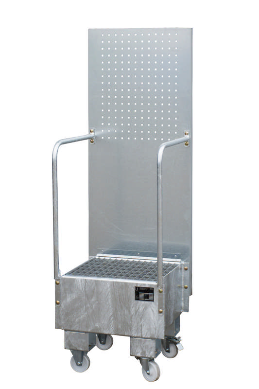 Fahrbare Auffangwanne mit Lochplattenwand Typ LPW 60-1, für 1x 60L-Fass, Auffangvolumen 60L, versch. Farben o. Feuerverzinkt