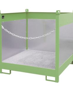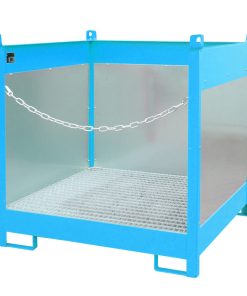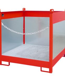 Fass-Stapelpalette Typ FSP-4G, mit Gitterrost, Spritzschutzwand 3-seitig, 210L Auffangvolumen, für 4x 200L Fass, 3-fach stapelbar, versch. Farben o. Feuerverzinkt