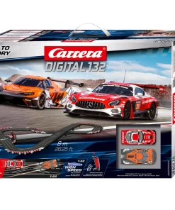 Der Ferrari 488 GTE „Carrera” ist ein echtes Must-Have für Carrera Piloten. Der kraftvolle Bolide glänzt in seiner Speziallackierung von vorne bis hinten im Carrera Design und ist der Hingucker im Wohnzimmer-Rennen auf der Carrera DIGITAL 132 Autorennbahn. Neben dem Carrera Logo in strahlendem Rot zieht sich das Design der geliebten Schienen der Kult-Rennbahn über die gesamte Karosserie des schnittigen Rennwagens. Angriffslustiges Rot mit schwarzen Highlights – so sieht ein echter Rennchampion bei Carrera aus! Das große Vorbild wird erst 2020 über die Piste bei den französischen Langstreckenrennen flitzen, aber Du kannst schon jetzt mit deinem neuen Traumauto über die Schienen heizen. Natürlich ist dem Ferrari dabei eine Platzierung auf dem Siegertreppchen sicher.