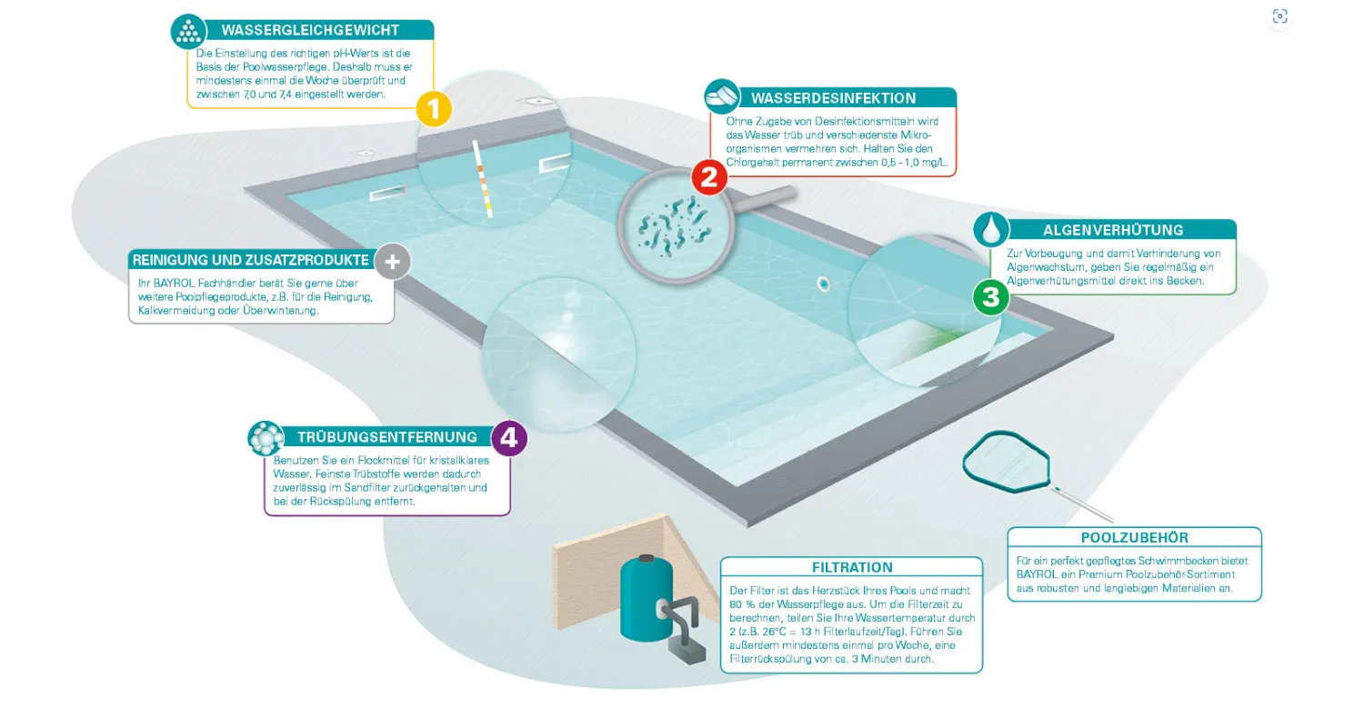 aktiv gegen hartnäckige Verschmutzungen in Frei- und Hallenbädern.