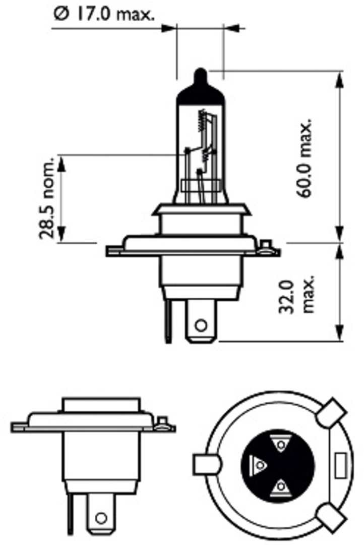 Halogenlampe H4 12V 60/55W Vision | Philips 12342PRN