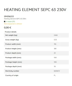 HELO SEPC63 Saunatec Knüllwald Heizelement Heizstab Ersatzheizstab Saunaofen 1500 Watt CUP45 HNVR45 SKSM45 SLH HMR45 Apollo Ring Wall