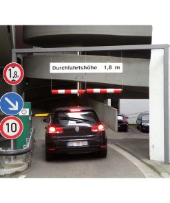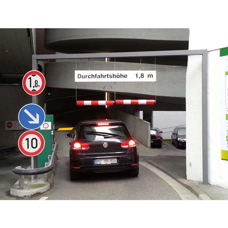 Die gestreiften Höhenbegrenzer MORION Kunststoff kennzeichnen und markieren die Durchfahrtshöhen bei Einfahrten in Parkhäusern, Tiefgaragen, Unterführungen und bei Überbauungen (Durchfahrten).