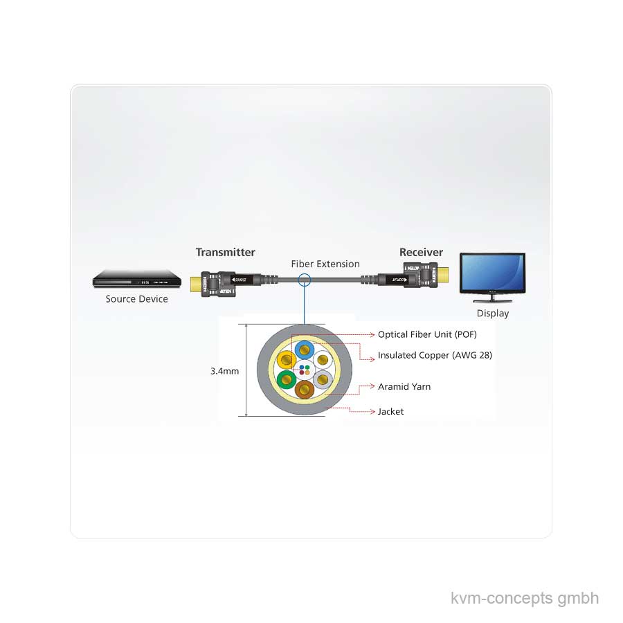 Das ATEN VE7833 ist eine aktive optische HDMI Verlängerung über eine Distanz von 30 Metern. Weitere verfügbare Längen: