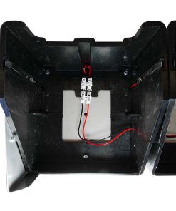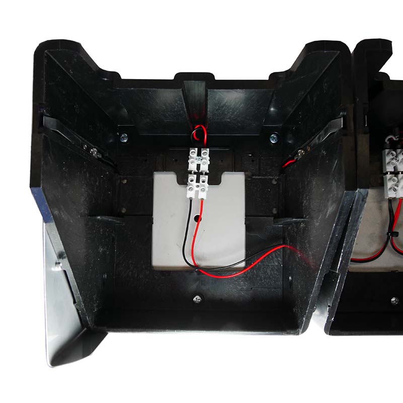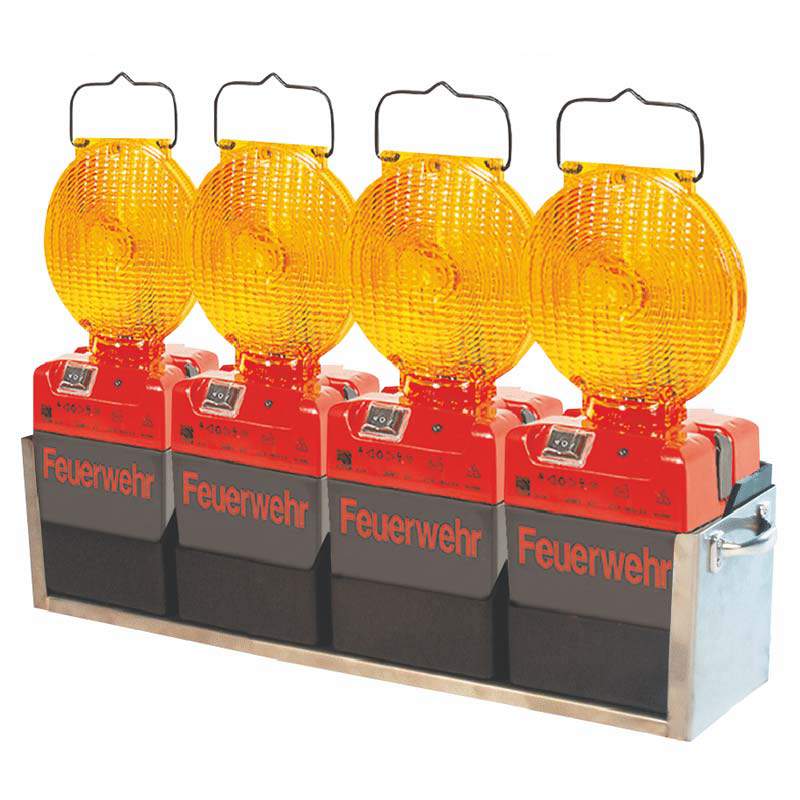 - Energieversorgung: Die Blitzleuchten werden über die in der Transportbox angebrachten Kontakte mit 12V bzw. 24V aufgeladen