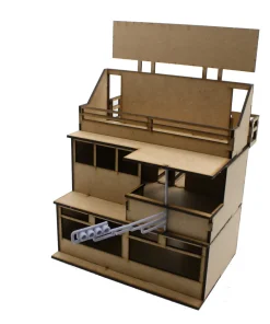 Der Lasercut-Bausatz ermöglicht den Bau des berühmten Le Mans Boxengebäudes für die Autorennbahn im Maßstab 1:32. Die einzelnen Bauteile können mit leichtem Druck aus dem Träger herausgedrückt werden. Zum Verkleben reicht gewöhnlicher Holzleim. Der Bausatz ist im Zusammenbau sehr einfach und auch für den Modellbauneuling bestens geeignet. Das Gebäude steht in kürzester Zeit!