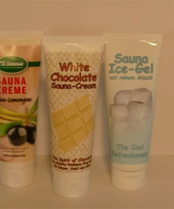 White-Choclate-Sauna-Cream wird auf die feuchte, angeschwitzte Haut aufgetragen und zieht schnell ein. Die Haut wird weich und geschmeidig. Gleichzeitig sorgen Peelingkörner für die Regeneration und fördern die Durchblutung der vom Alltag gestressten Haut.
