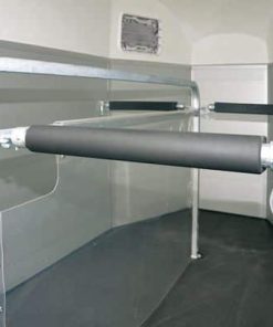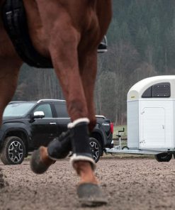 - Geteilte und gepolsterte Brust- und Heckstangen, höhen- und längsverstellbar, mit EquiGuard® Panikentriegelung