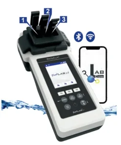 Der PoolLab 2.0 bietet drei parallele Messkammern zur gleichzeitigen Messung von drei Wasser-Parametern, ein großes Farb-Display mit Hintergrundbeleuchtung, eine direkte WiFi-Schnittstelle zur LabCOM Cloud und weiterhin Bluetooth-Verbindung zur LabCOM App sowie die Möglichkeit 24 Pool-Wasser-Parametern zu messen. Der PoolLab 2.0 setzt neue Maßstäbe für die Wasseranalyse privater und professioneller Pools und Spas.