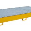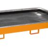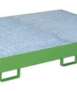 Mit Hilfe von Regalwannen können auch bestehende Regalsysteme wirtschaftlich und schnell gesetzeskonform umgerüstet werden —- Konstruktion aus 3 mm Stahlblech — Mit verzinktem Gitterrost (Tragfähigkeit 1000 kg/m²) — 100 mm Unterfahrhöhe — Mit Übereinstimmungserklärung (ÜHP) gem. StawaR — Zugelassen für entzündbare Flüssigkeiten der GHS-Kategorien 1-3 — Zugelassen für gewässergefährdende Flüssigkeiten der GHS-Kategorien 1-4