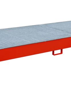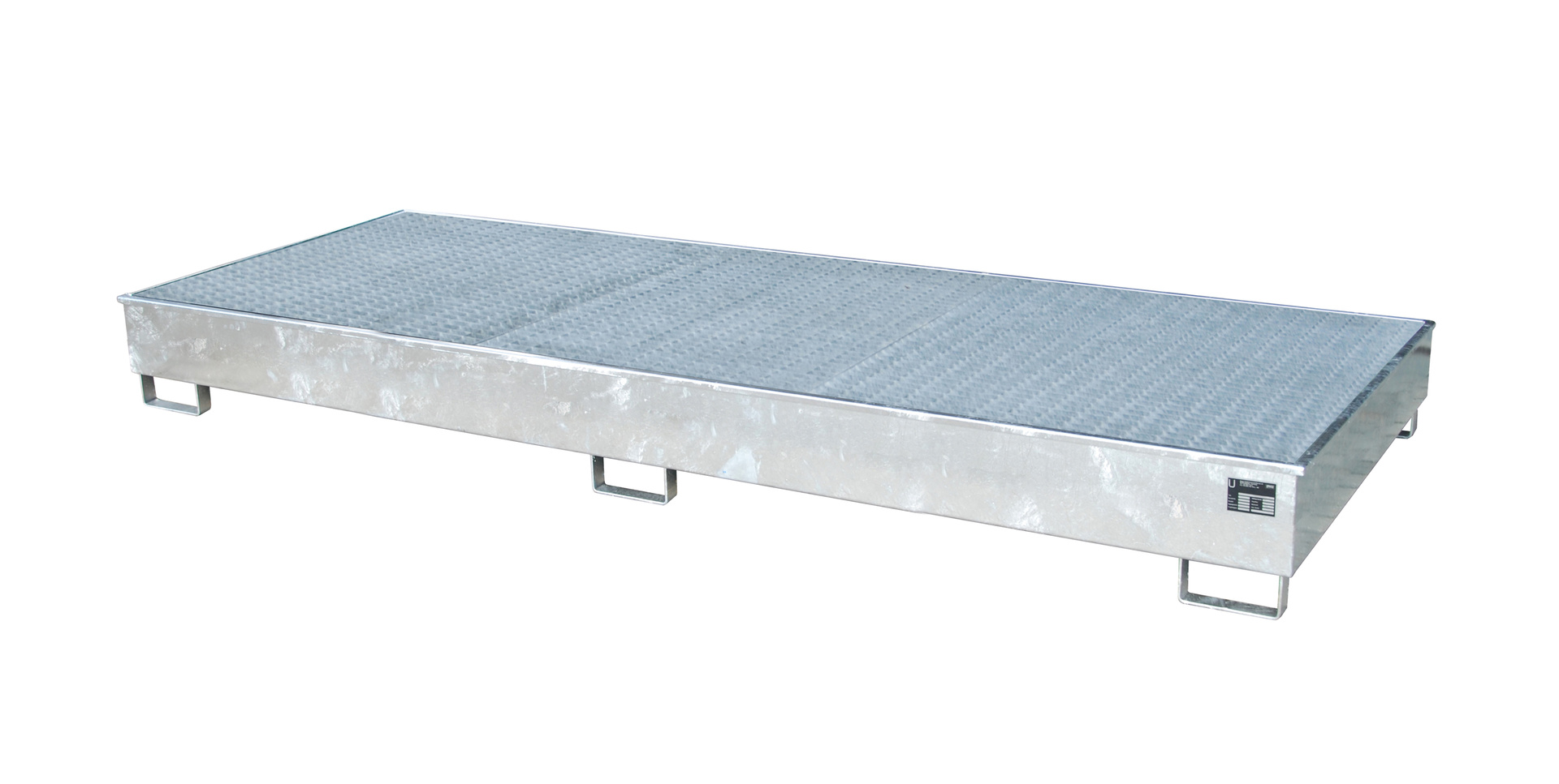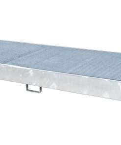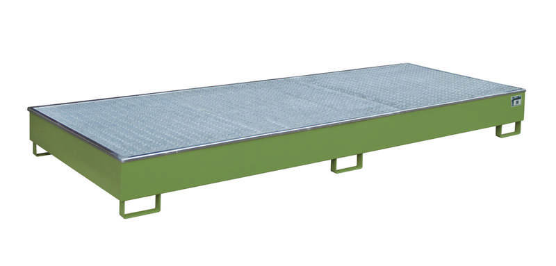 Regalwanne Typ RW-GR 3300-2 PE, mit PE-Einsatz, mit Gitterrost, aus Stahl, für Trägerlänge 3300mm, 540L Auffangvolumen, versch. Farben o. Feuerverzinkt