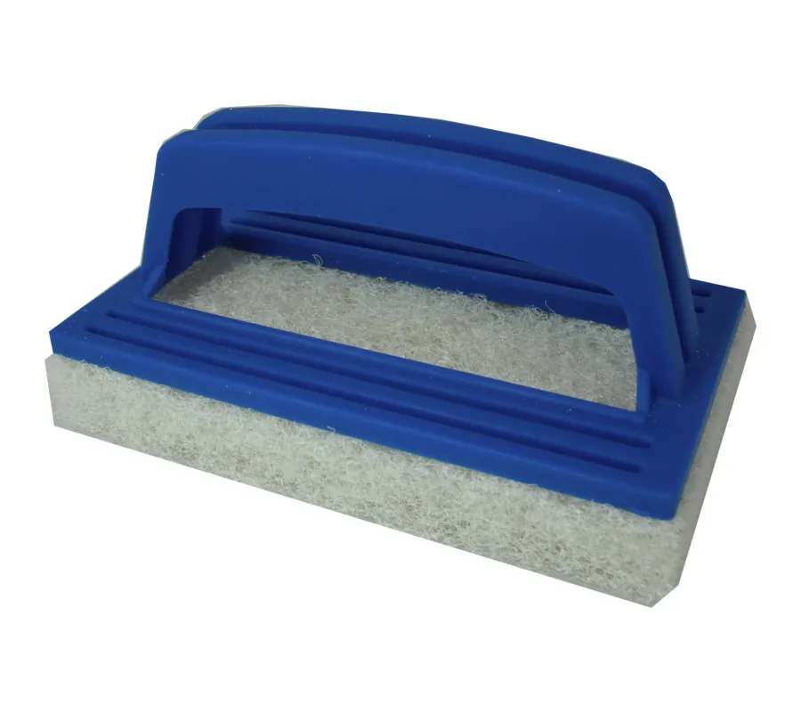 Handschwamm PAD, mit blauem Softgriff und mit Kunststoff Vlies für die erfolgreiche Schwimmbadpflege – Randreinigung insbesondere der Wasserlinie.
