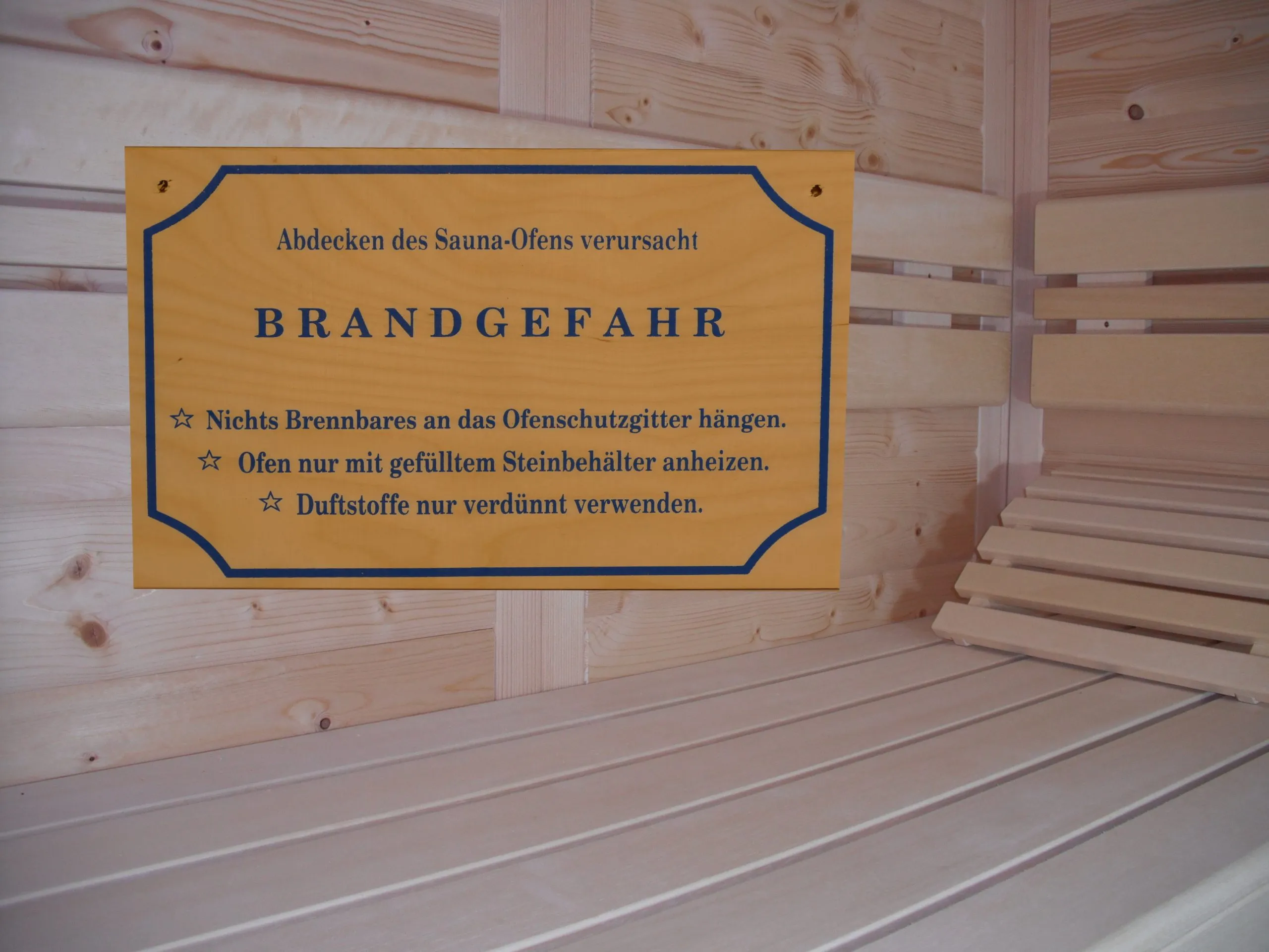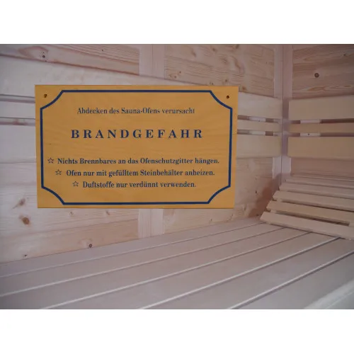 Sauna Hinweisschild Holz Brandgefahr