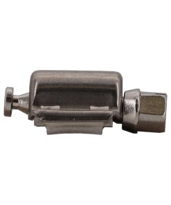 Im Schraubgehäuse mit Schnellverschluss ist eine Drehgewindeschraube mit Schlitz- und Sechskantkopf M5 eingebaut. Das Drehen der Schraube im Spannschloss zieht das Spannband ein und fixiert es.